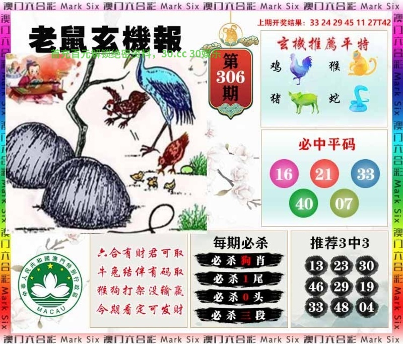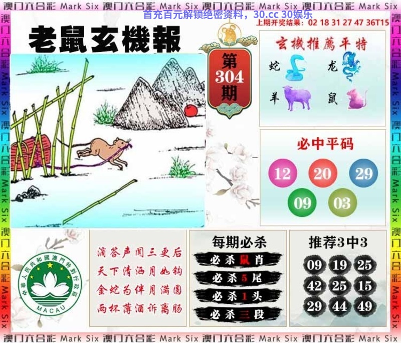 309期九肖:羊鸡鼠牛猪马兔猴虎
